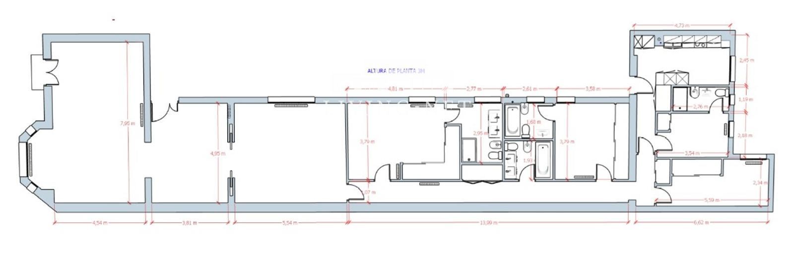 Fabuloso piso completamente reformado a estrenar en alquiler, en edificio clásico con fachada preciosa y portal señorial, en una de las calles más tranquilas de Almagro. Destaca por su luminosidad, techos de 3m, amplitud de estancias, bonitas vistas y tranquilidad. Ubicado en una segunda planta (con altura de tercero), la vivienda, de 280m útiles, se distribuye así: