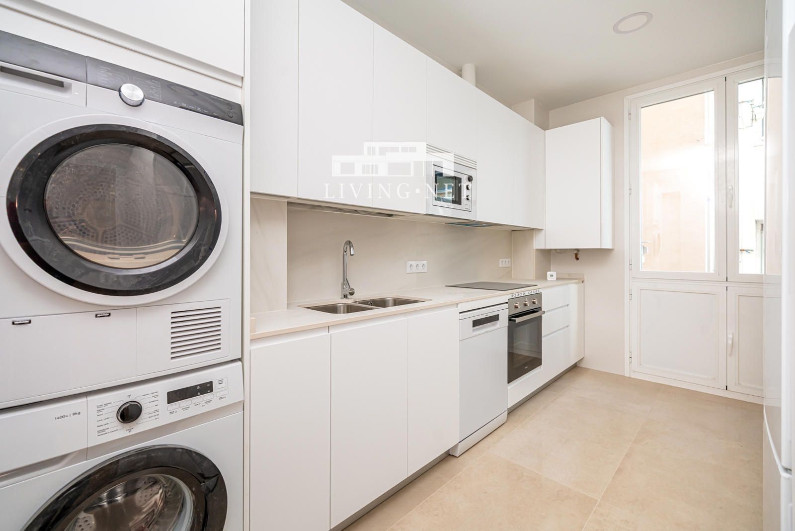 - Zona de servicio con su propia entrada, compuesta por cocina totalmente equipada con electrodomésticos (placa de inducción y campana, horno, microondas, nevera-congelador, lavavajillas, lavadora, secadora) y mucho espacio de almacenaje. Dormitorio y baño de servicio.