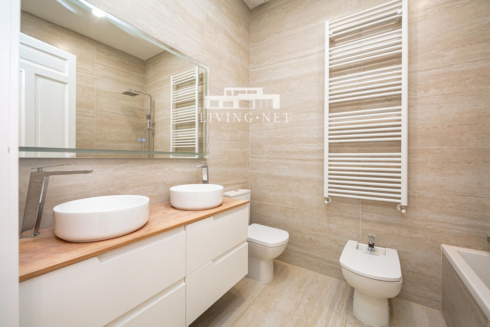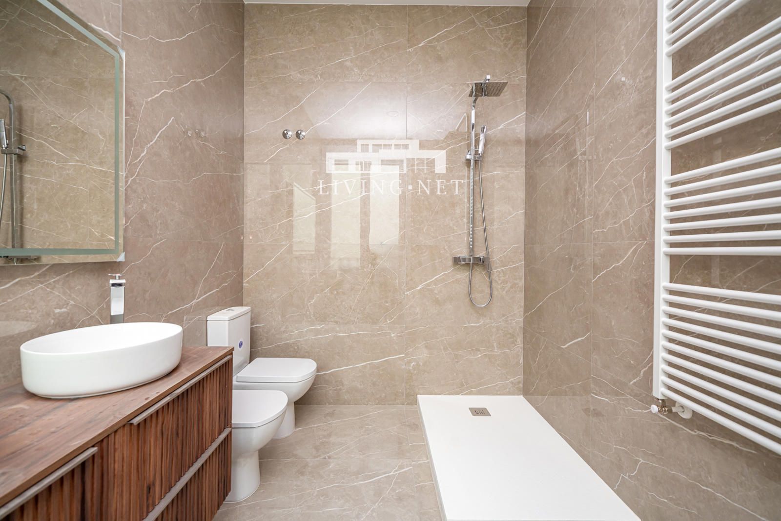 - Zona de noche: gran suite principal a patio de luces grande y muy cuidado, con 4 enormes armarios, y cuarto de baño con ducha; segunda suite de familia doble, también con 4 armarios y cuarto de baño con bañera; tercer dormitorio de familia individual de buen tamaño, con gran armario, y cuarto de baño exterior, asimismo con bañera, que se utiliza también como aseo de invitados.