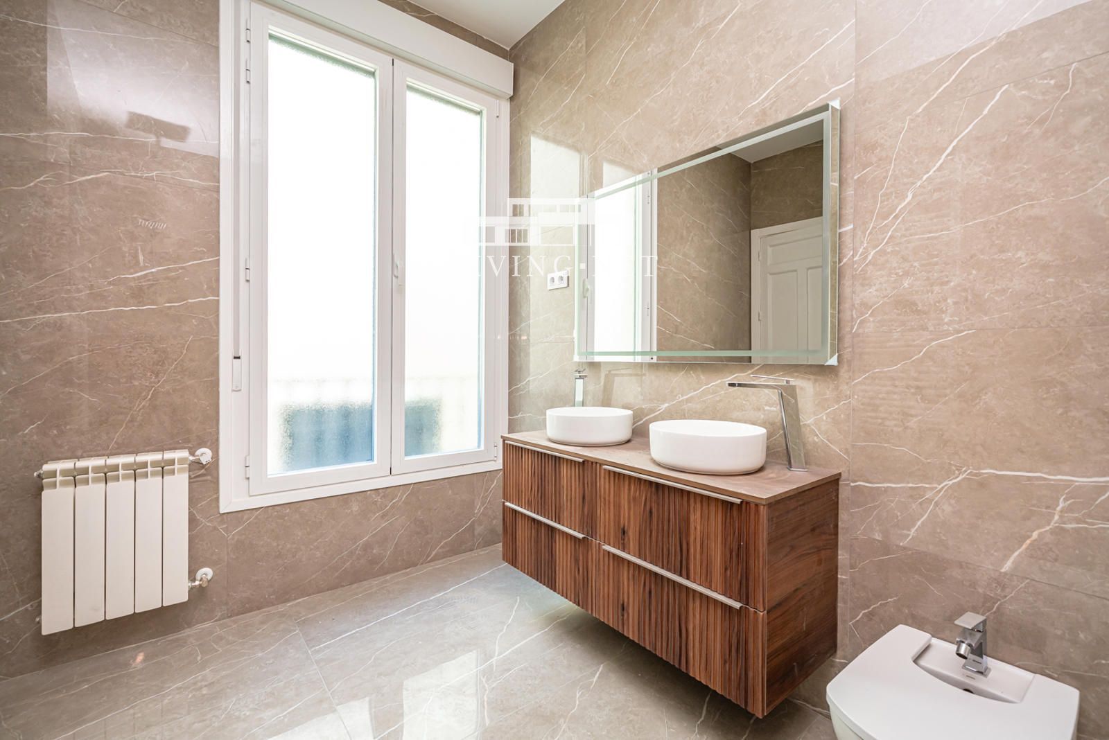 Suelo pino melis mate restaurado precioso, armarios completamente vestidos con interiores vegetales, aire acondicionado por conductos, carpintería exterior con doble aislamiento térmico y acústico, calefacción y agua caliente individual.