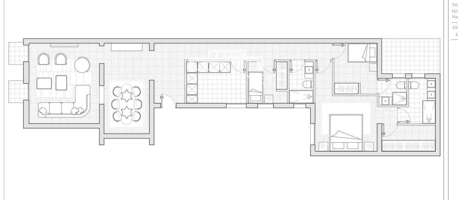 Zona de noche compuesta por: Gran suite principal, con vestidor y cuarto de baño en suite con ducha, luminoso y silencioso a patio de luces; segundo dormitorio de familia doble con cuarto de baño en suite; tercer dormitorio de familia, también doble, con cuarto de baño exterior, que también se utiliza como aseo de invitados. Todos los baños tienen ventana.
