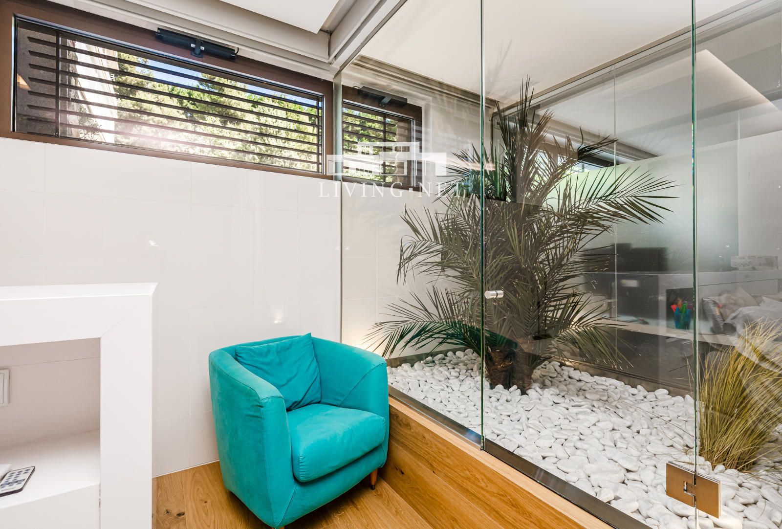 - Planta semisótano: Suite principal de muy buen tamaño, con vestidor, y cuarto de baño con enorme ducha y bañera de hidromasaje. Segundo dormitorio amplio, actualmente utilizado como despacho, con vestidor y cuarto de baño exterior. Zona de lavadero-planchero.