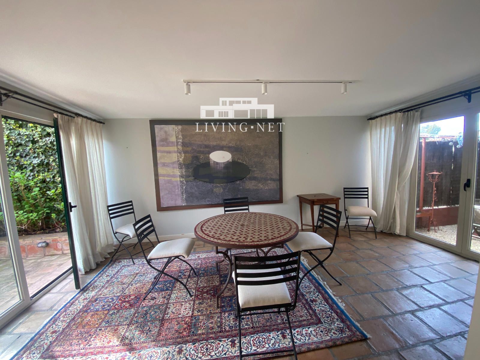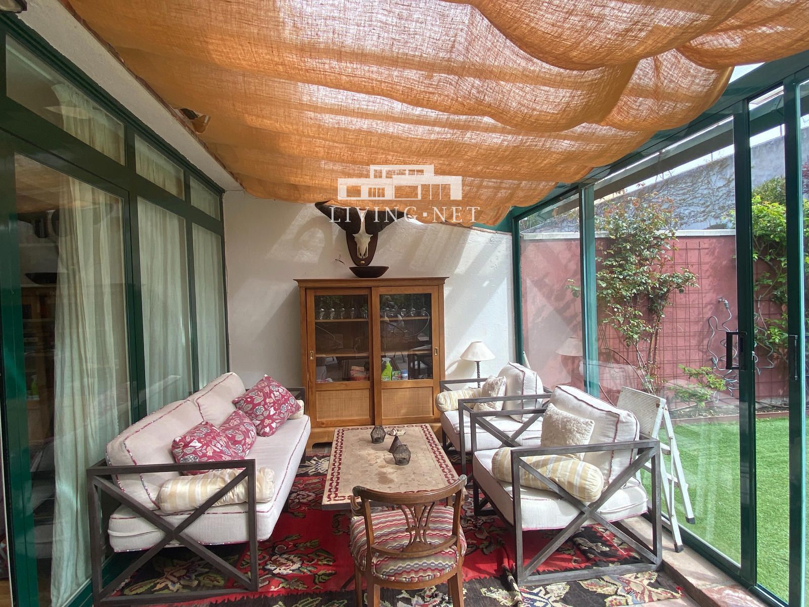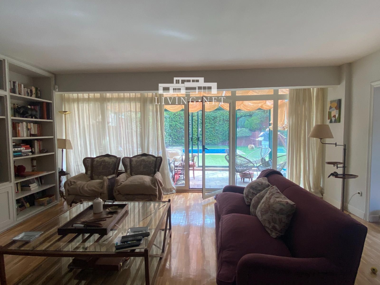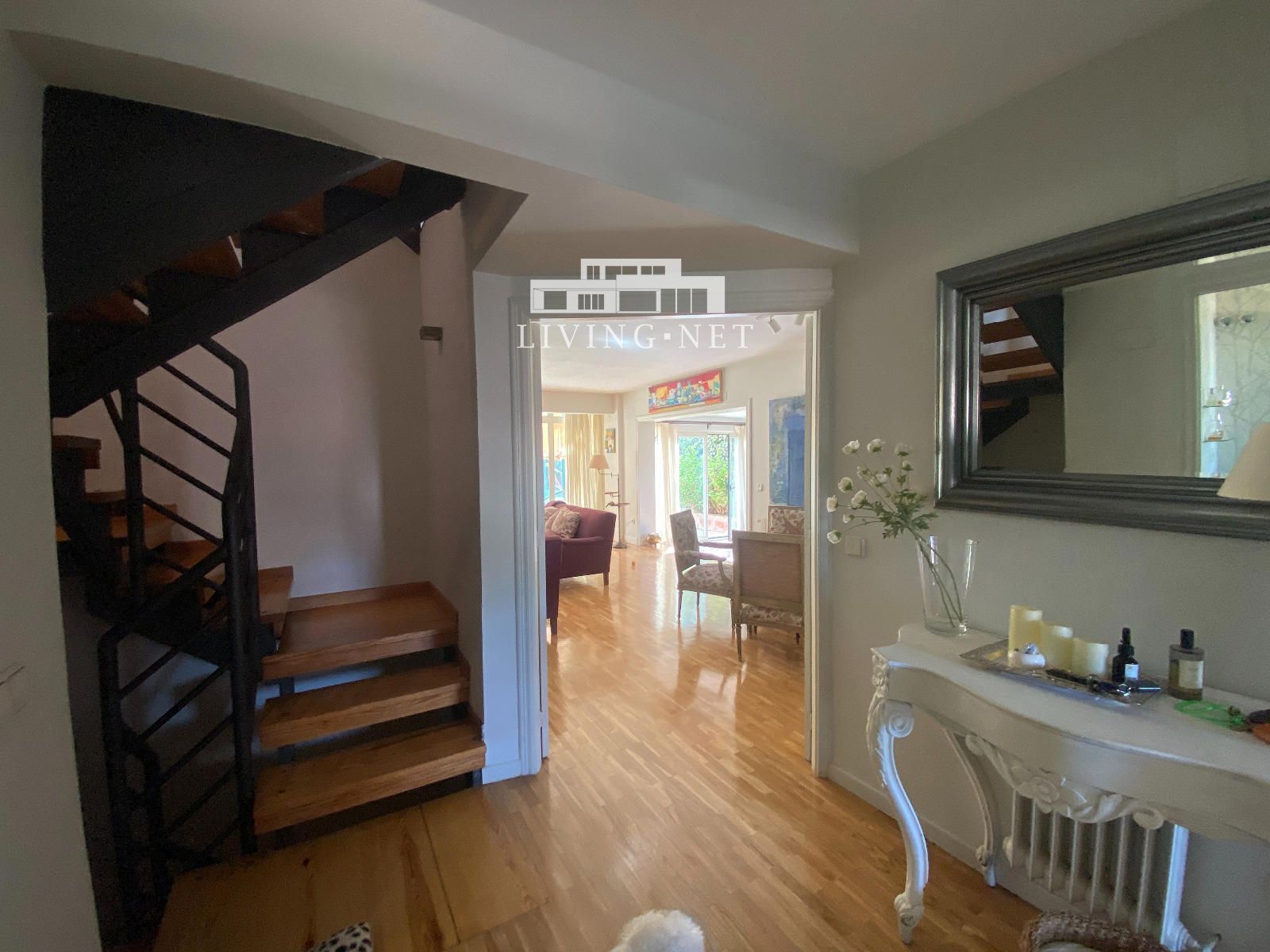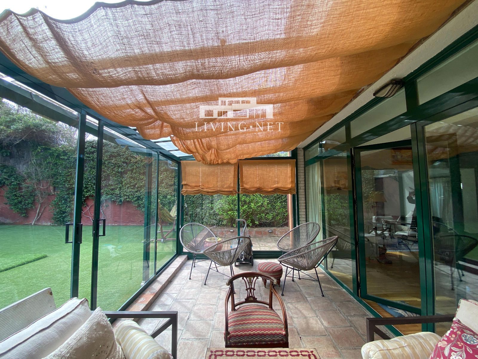 - Planta principal: Buen hall de entrada, aseo de invitados, fantástico salón con grandes puertas correderas a porche acristalado con vistas al jardín, con gran zona de estar exterior; comedor independiente, también con salida directa al jardín. Gran cocina muy luminosa con zona de office, con acceso a jardín lateral (con comedor exterior con pérgola).